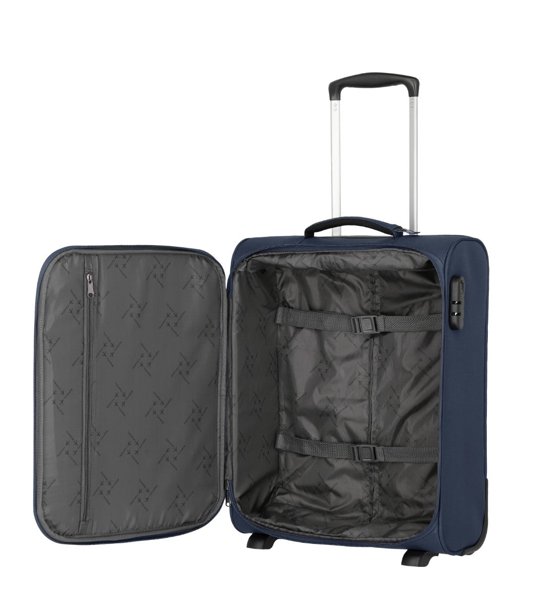 Denne kabinekuffert er fremstillet af særligt elastisk polyester og er udviklet til brug som håndbagage. Dens kompakte dimensioner betyder, at den kan tages med om bord som håndbagage hos mange flyselskaber.