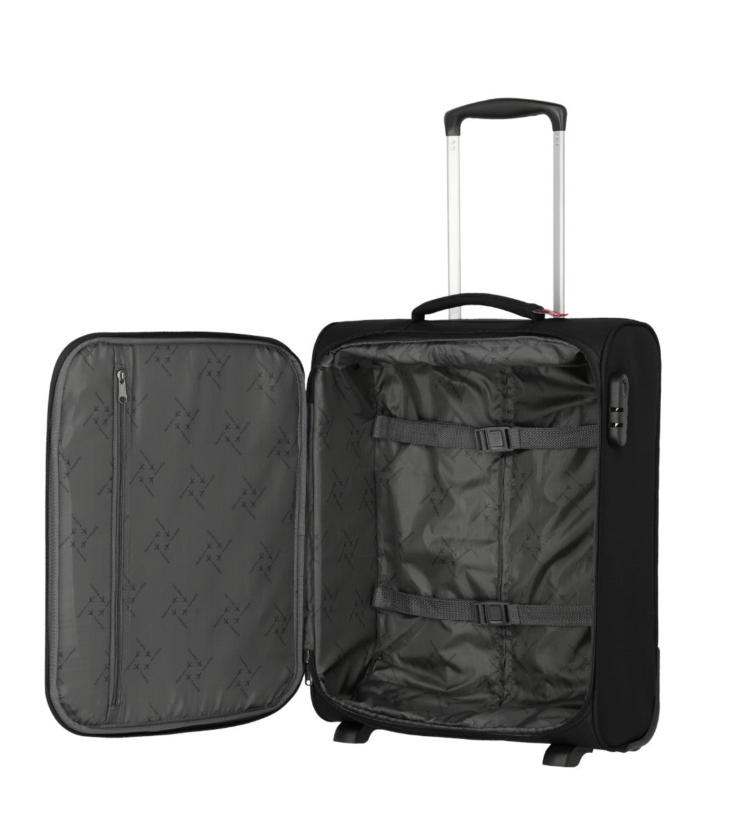 Denne kabinekuffert er fremstillet af særligt elastisk polyester og er udviklet til brug som håndbagage. Dens kompakte dimensioner betyder, at den kan tages med om bord som håndbagage hos mange flyselskaber.