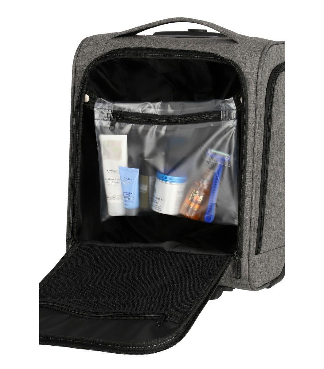 Travelite Underseat Kabinekuffert er en kompakt og let håndbagagekuffert, der er designet til at passe under sædet på de fleste fly – ideel til korte ture og nem adgang til dine vigtigste ejendele under rejsen. Med sin vægt på kun 2,1 kg er denne kuffert utrolig let at transportere, mens det rummelige indre på 28 liter giver dig plads til alt det nødvendige.