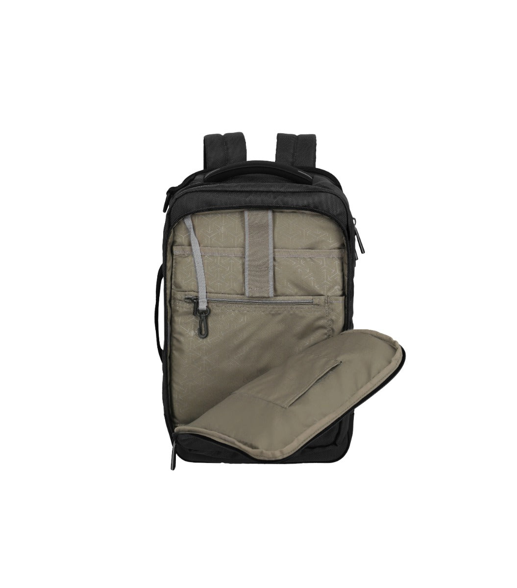 Rejsetasken er udstyret med komfortable bærehåndtag og en justerbar skulderrem, så du kan bære den, som det passer dig bedst. Den fleksible funktionalitet gør, at tasken også kan bruges som rygsæk – perfekt til dig, der ønsker maksimal bevægelsesfrihed. Indvendigt tilbyder tasken god plads til dine ting, mens praktiske lommer gør det nemt at organisere mindre genstande.