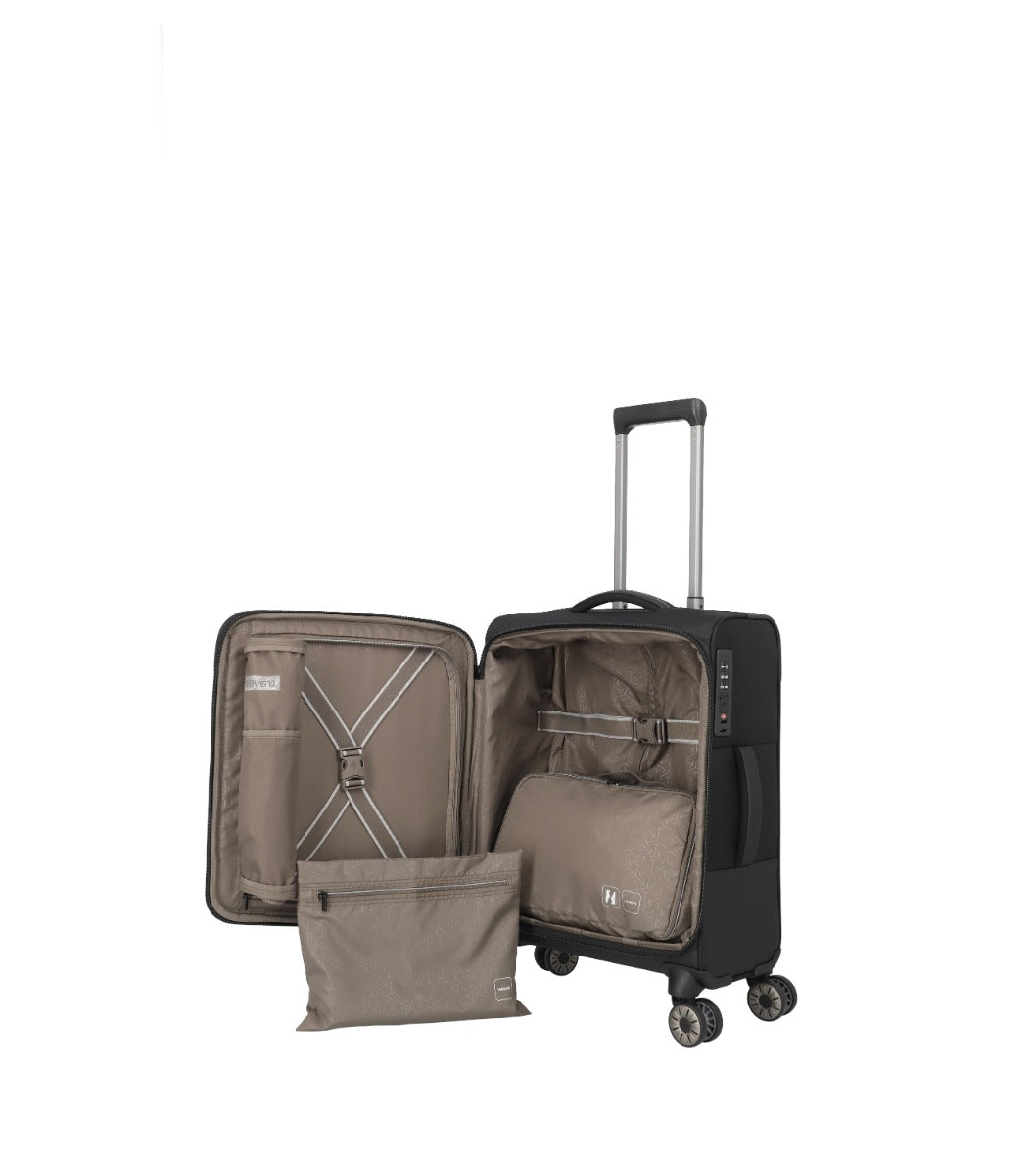 Denne kuffert er en softcase kuffert. Det betyder, at den er fremstillet som en “blød” kuffert. Fordelen ved dette ligger i fleksibiliteten af stoffet og muligheden for at udvide kufferten.