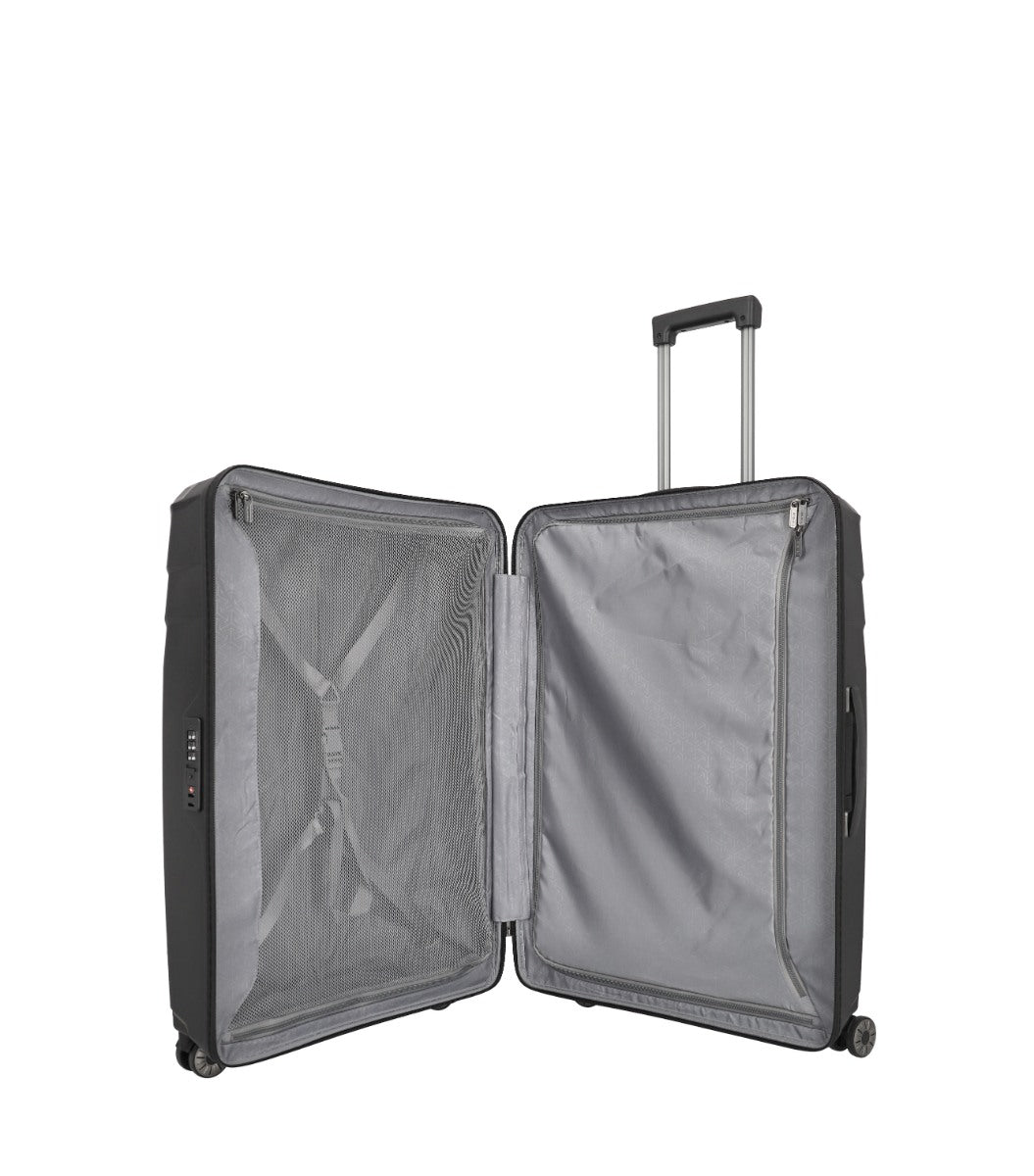 Denne kuffert er fremstillet i polypropylene. Materialet er ikke lige så stærkt som polycarbonat, men derimod rigtig let. Denne type kuffert er perfekt, hvis du vil rejse så let som muligt men samtidig have en holdbar kuffert.