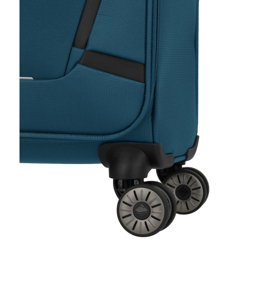 Jetpack Light er udstyret med et slidstærkt softshell-materiale og fire letløbende hjul, der giver dig maksimal bevægelsesfrihed, selv i travle lufthavne. Den opfylder standardmålene for kabinebagage hos de fleste flyselskaber og har praktiske ydre lommer, så du hurtigt kan få fat i rejsedokumenter eller elektronik. Indvendigt er den udstyret med rumdelere og spændestropper, som holder dine ting på plads under hele rejsen.
