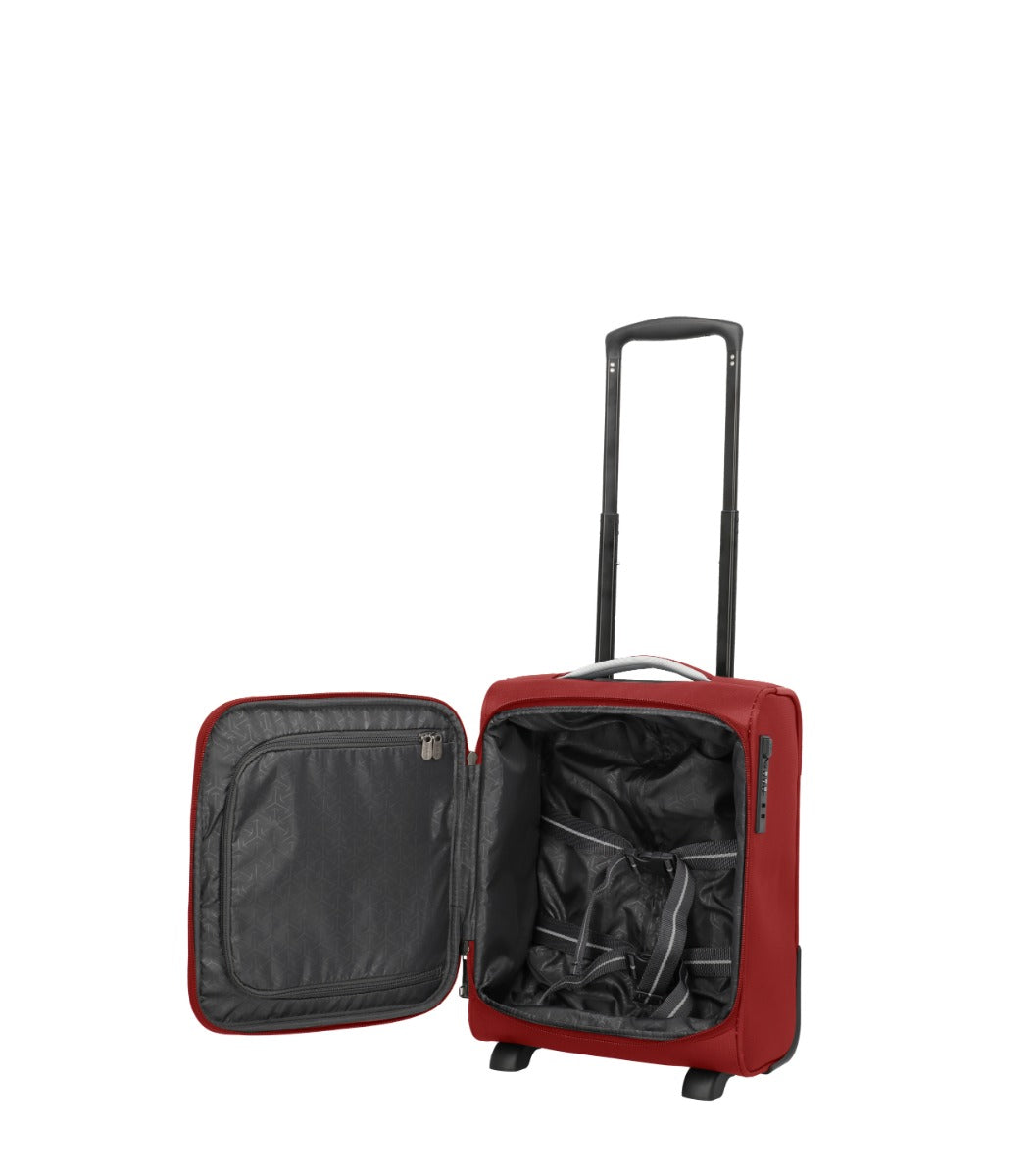 Travelite Jetpack Easy er den ideelle kabinekuffert for den moderne rejsende, der søger en kombination af letvægt, funktionalitet og stil. Med sine kompakte mål på 40 x 30 x 20 cm og en vægt på kun 1,7 kg opfylder den håndbagagereglerne hos flyselskaber som EasyJet, Vueling og Wizz, hvilket gør den perfekt til korte rejser og weekendture.