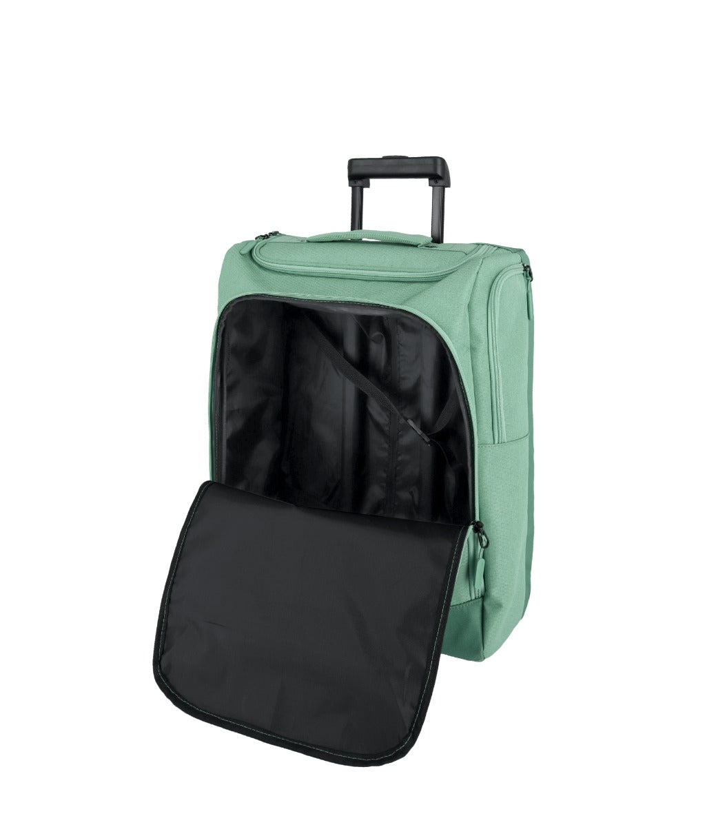 Opbygningen er meget simpel - kabinetasken indeholder et stort rum til bagagen. Tasken er fremstillet i slidstærkt og holdbart polyester, som også er ekstrem let at håndtere og rengøre.