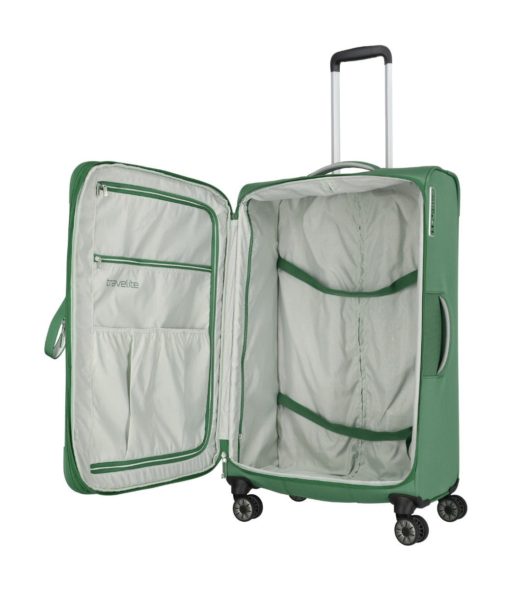 Denne kuffert er en softcase kuffert. Det betyder, at den er fremstillet som en “blød” kuffert. Fordelen ved dette ligger i fleksibiliteten af stoffet og muligheden for at udvide kufferten.