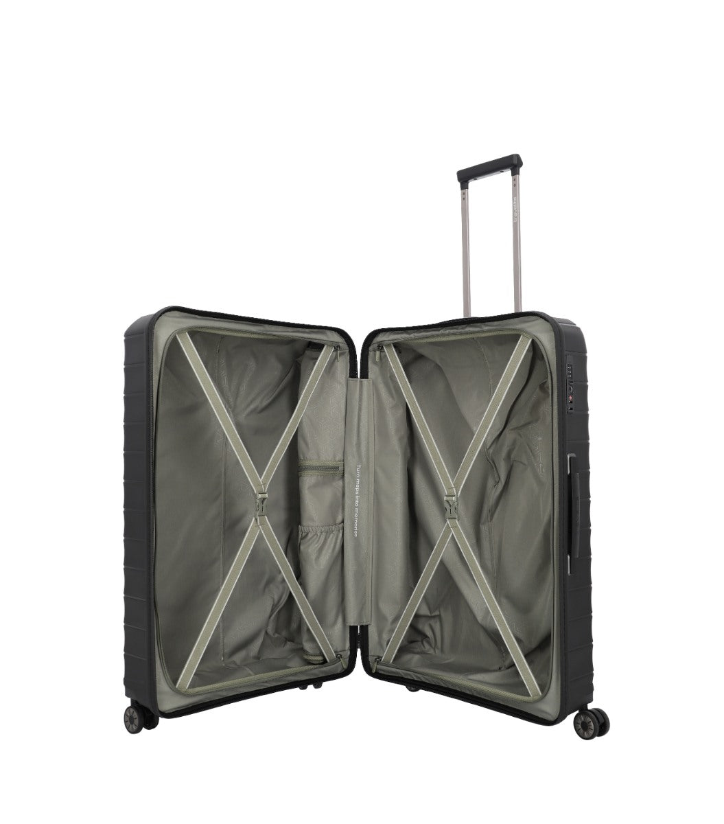 Mooby kufferten er ideel til længere rejser, hvor du har brug for ekstra plads til alt, hvad din familie behøver. Det rummelige indre holder dit tøj sikkert på plads takket være pakkestropper og en pakkedeler med lynlåsrum. Kufferten er både let og stærk, fremstillet af ridsefast genanvendt polypropylen, hvilket gør den både robust og miljøvenlig.