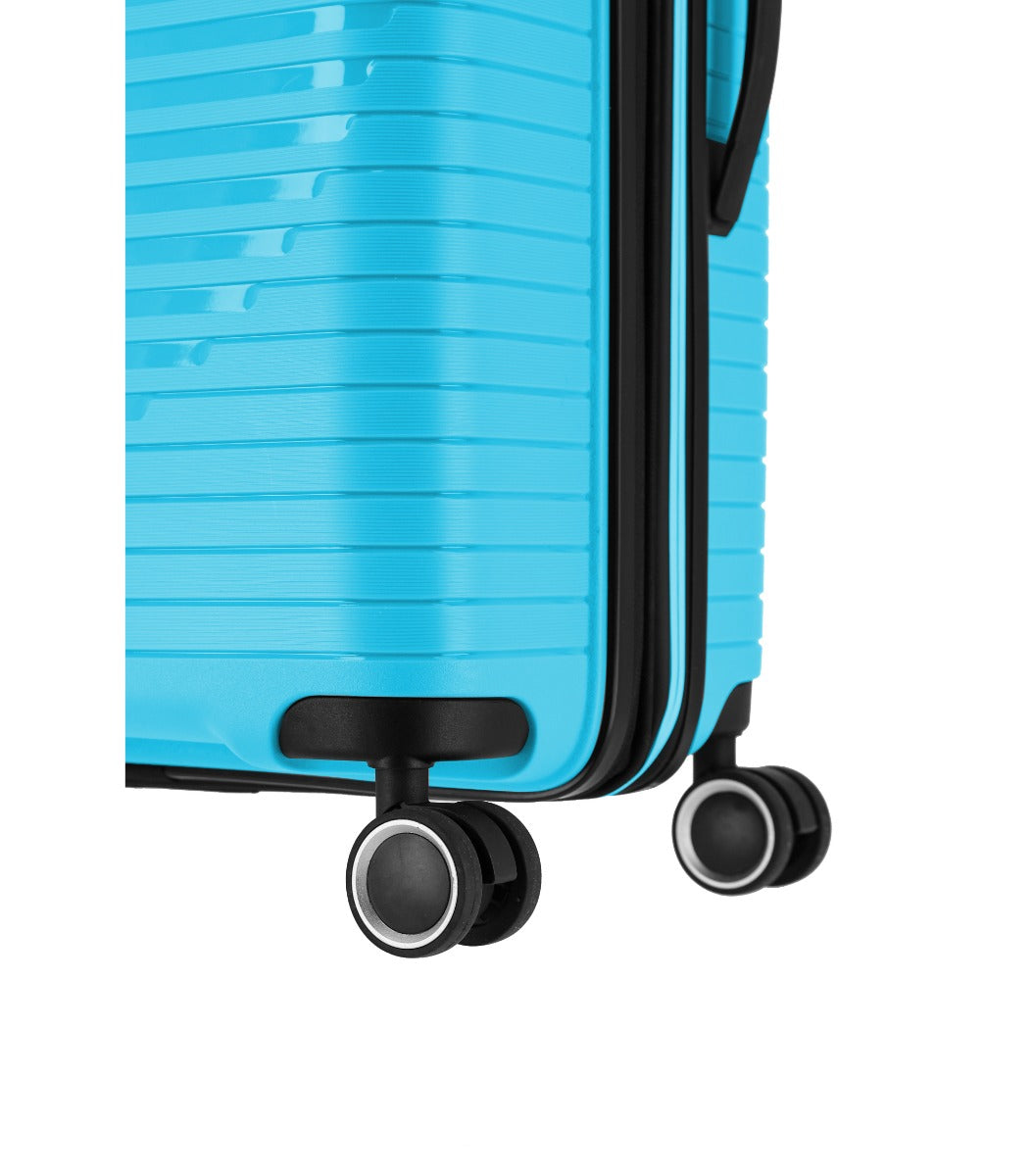 Denne kuffert er udstyret med 4 hjul. Dette giver en fordel, hvis du hovedsageligt skal transportere kufferten henover et jævnt terræn. Derudover giver det dig mulighed for at skubbe kufferten i stedet for at trække den.