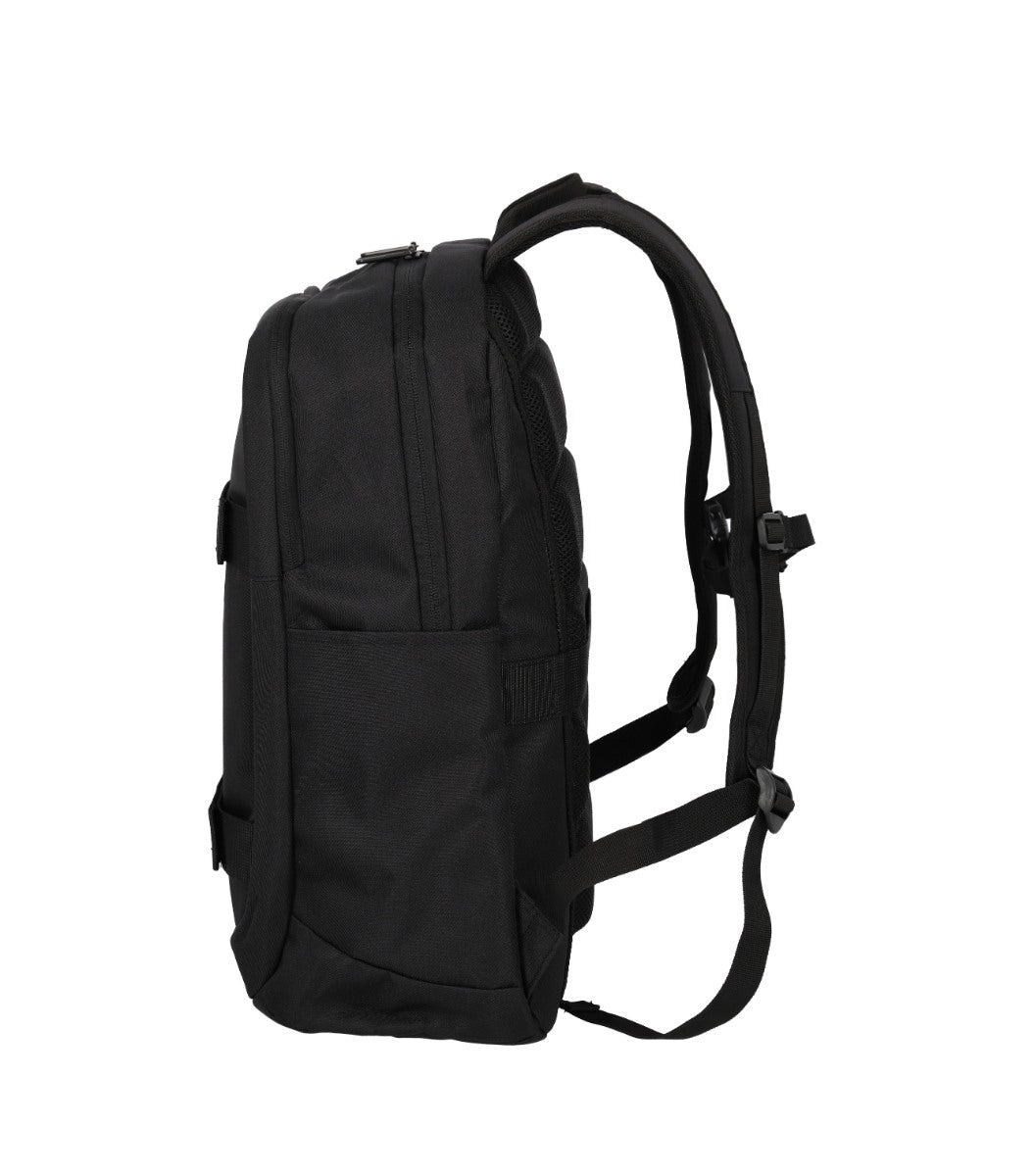 Rygsækken er fremstillet af genanvendte materialer, hvilket gør den til et bæredygtigt valg uden at gå på kompromis med kvaliteten. Det vandafvisende ydre beskytter mod regn og fugt, så du trygt kan tage den med overalt. Ergonomiske skulderstropper og et polstret rygpanel sikrer høj komfort, selv når rygsækken bæres i længere tid.