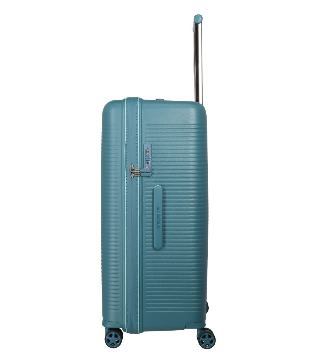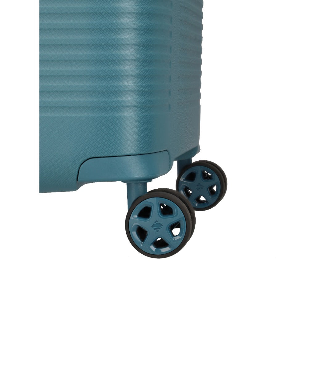 Den er udstyret med fire stillegående hjul, der roterer 360°, hvilket giver dig en ubesværet manøvredygtighed gennem lufthavne og byer. Den teleskopiske håndtag gør det nemt at trække kufferten, mens de robuste håndtag på toppen og siden gør den enkel at løfte, når det er nødvendigt.