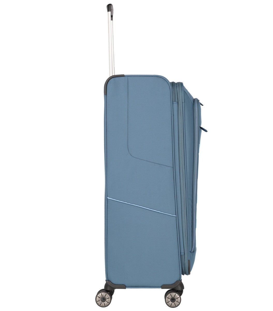 Denne kuffert er en softcase kuffert. Det betyder, at den er fremstillet som en “blød” kuffert. Fordelen ved dette ligger i fleksibiliteten af stoffet og muligheden for at udvide kufferten.