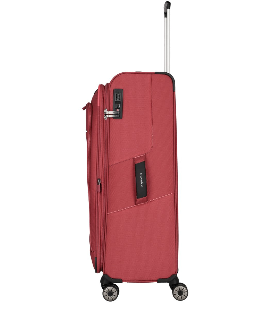 Denne kuffert er en softcase kuffert. Det betyder, at den er fremstillet som en “blød” kuffert. Fordelen ved dette ligger i fleksibiliteten af stoffet og muligheden for at udvide kufferten.