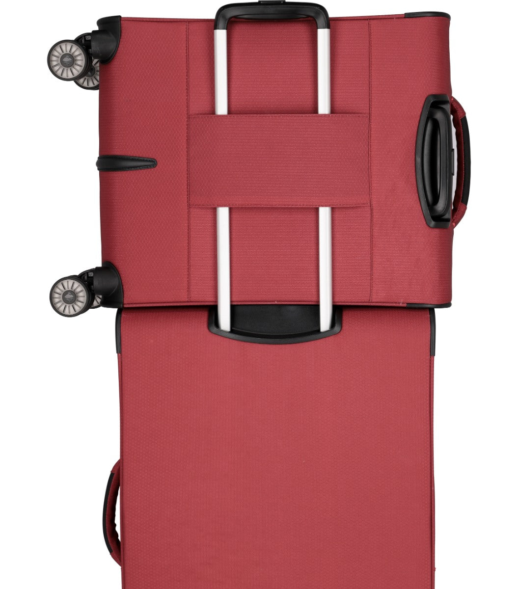 Denne kuffert er en softcase kuffert. Det betyder, at den er fremstillet som en “blød” kuffert. Fordelen ved dette ligger i fleksibiliteten af stoffet og muligheden for at udvide kufferten.
