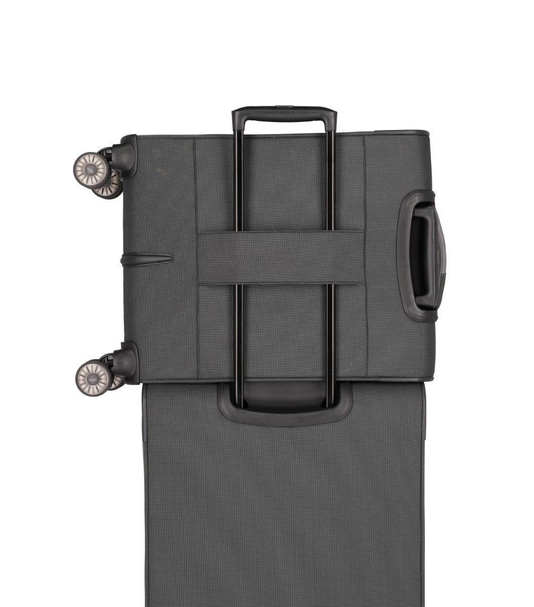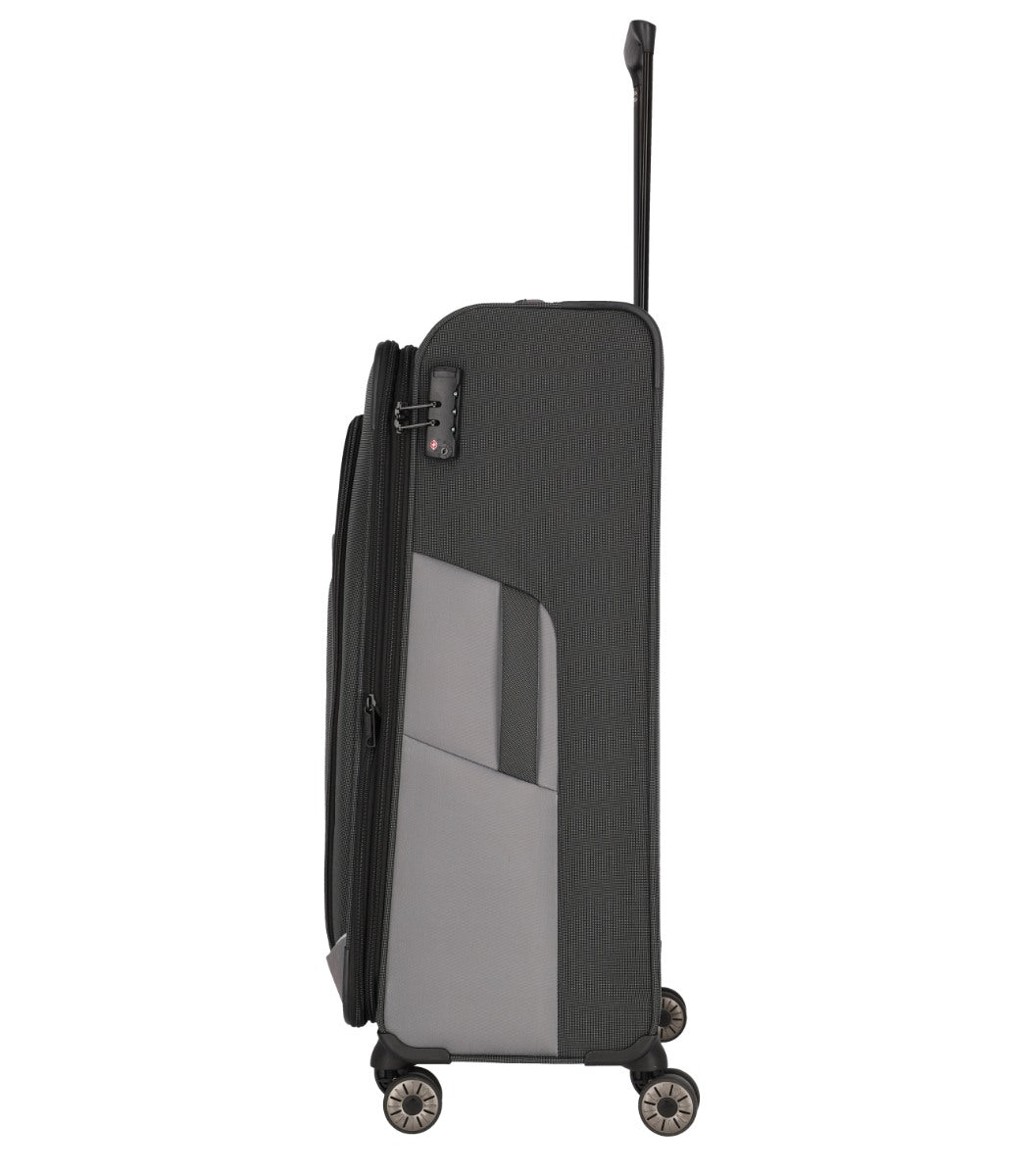 Denne kuffert er en softcase kuffert. Det betyder, at den er fremstillet som en “blød” kuffert. Fordelen ved dette ligger i fleksibiliteten af stoffet og muligheden for at udvide kufferten.