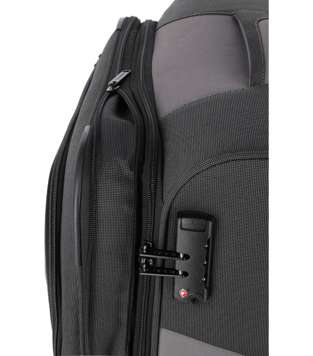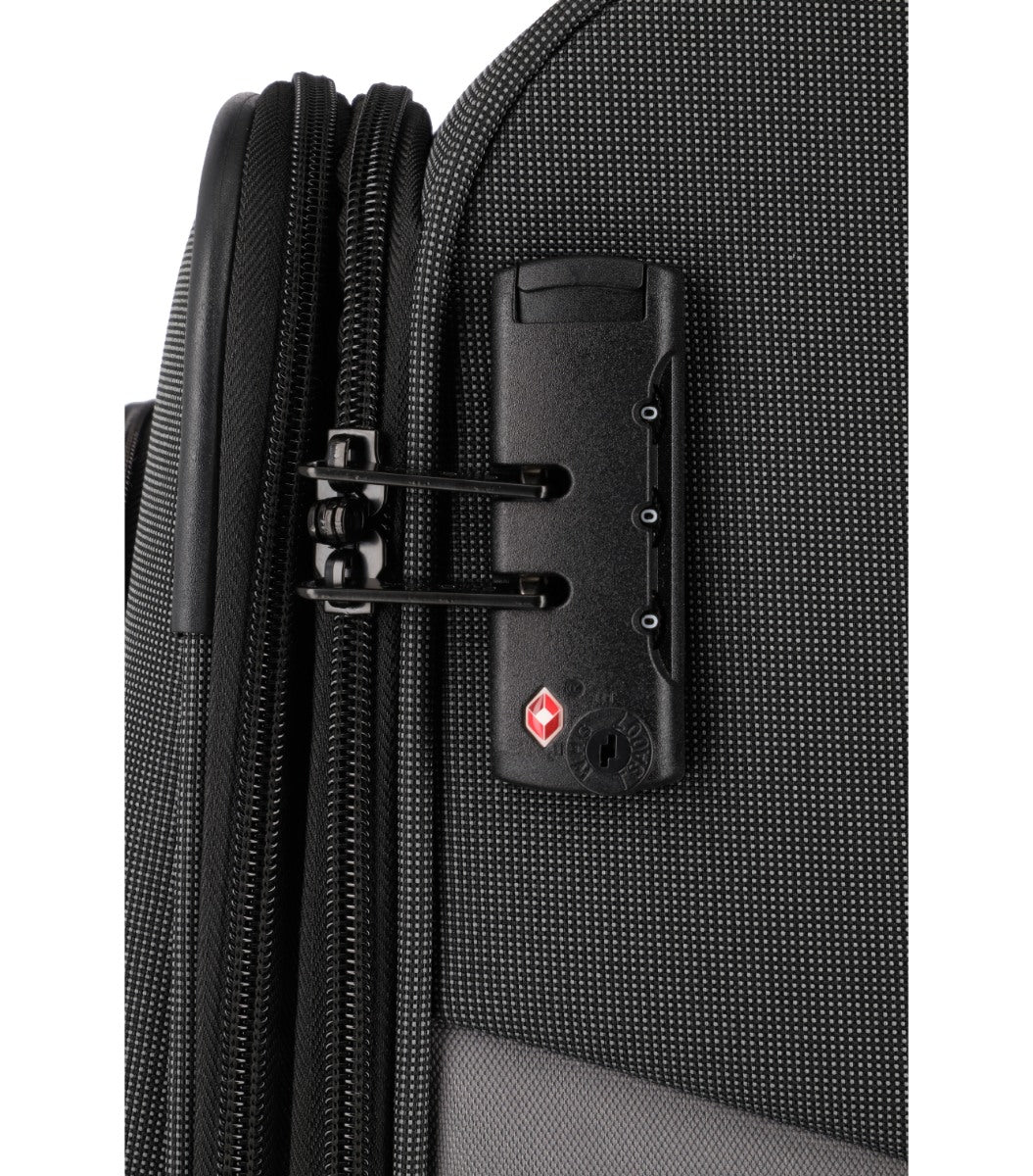På kufferten sidder en indbygget TSA-kombinationslås, som giver et ekstra lag af sikkerhed. Ligeledes er der separate lommer til lettere og forbedret organisering samt fire stærke og solide hjul, der giver en let og behagelig manøvre over jævn overflade.