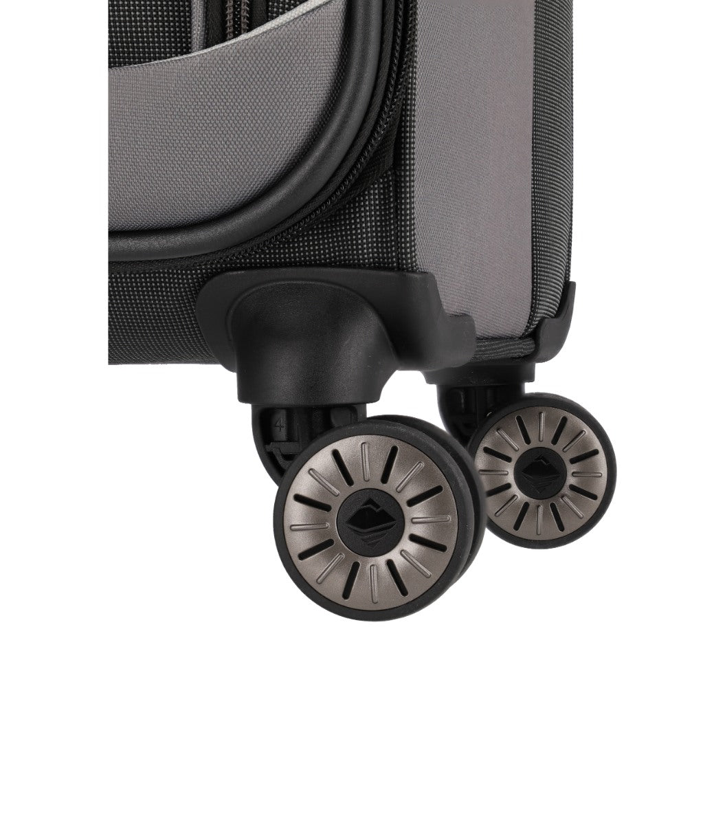 Denne kuffert er udstyret med 4 hjul. Dette giver en fordel, hvis du hovedsageligt skal transportere kufferten henover et jævnt terræn. Derudover giver det dig mulighed for at skubbe kufferten i stedet for at trække den.