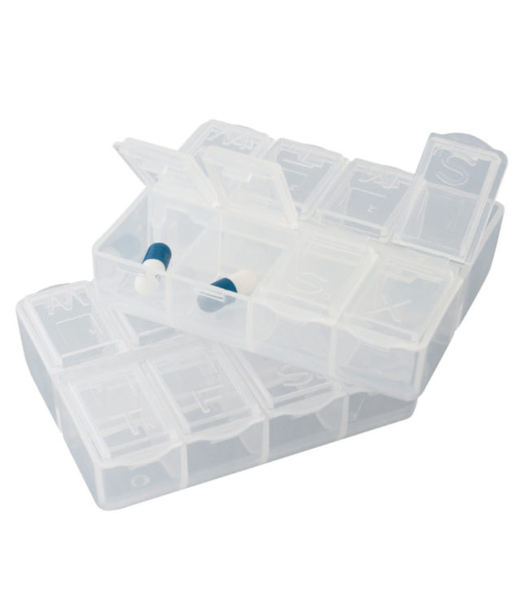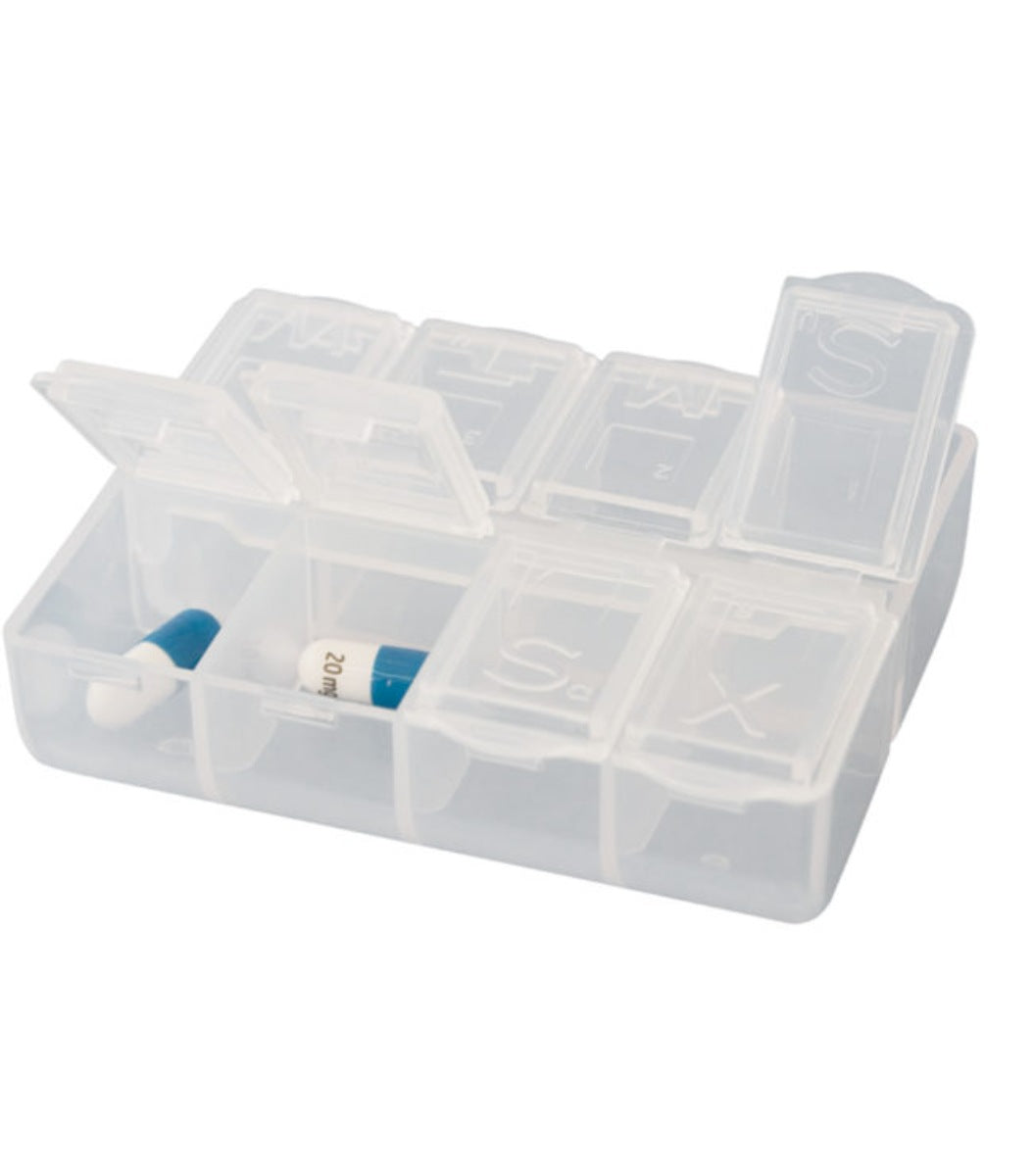 Travelsafe pilleæsker har 8 rum med låg, hvor ugens første bogstav er angivet. På denne måde kan du se, hvilken dag du stadig skal tage din medicin.