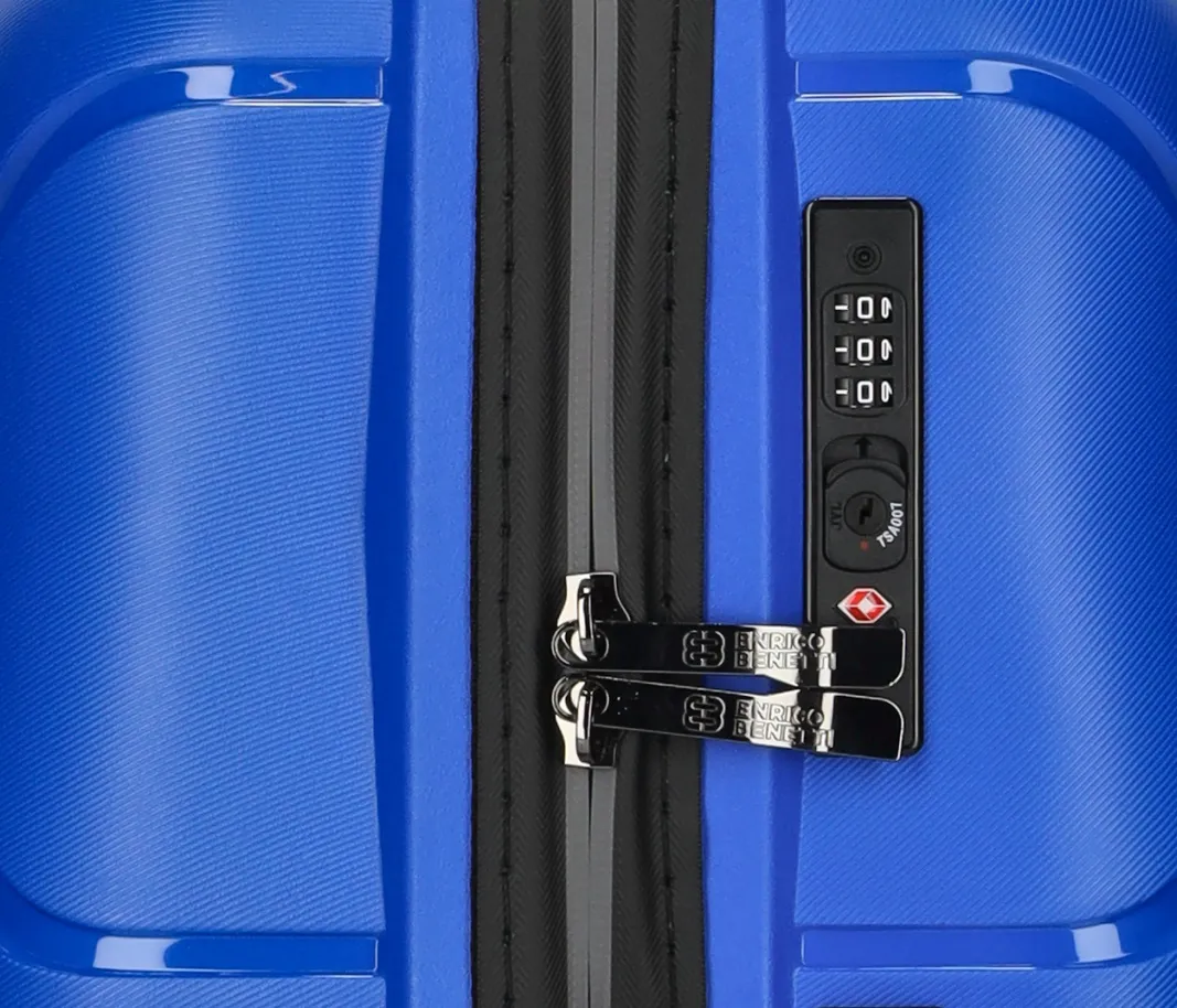 Enrico Benetti Kingston sky blue mellem kuffert er en trolley med en stilfuld og moderne design, lavet af letvægtsmaterialer, som gør dem nemme at transportere, og de har en robust konstruktion, der kan modstå slid og stød under transport.