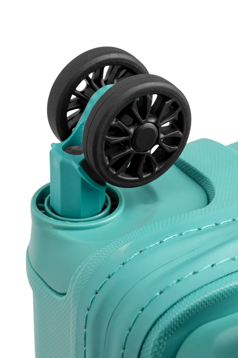 De fire kuglelejehjul sikrer en ekstra jævn og støjsvag kørsel, mens den integrerede TSA-lås gør rejsen mere sikker og problemfri – især ved rejser til Nordamerika. Indvendigt er kufferten udstyret med et aftageligt og vaskbart for, hvilket gør det nemt at holde kufferten ren og frisk over tid.